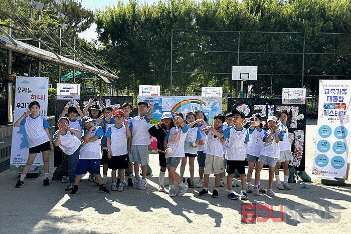 [에듀뉴스] 대전광역시교육청(교육감 설동호) 산하 대전서부교육지원청은 남북한 학생과 학부모의 소통과 교류를 통한 상호이해를 증진하기 위해 4일 대전하기초등학교에서 ‘남북한 상호이해 페스티벌’을 운영했다고 밝혔다. 대전서부교육지원청은 탈북학생의 안정적이고 행복한 학교생활을 위한 ‘남북한 상호이해 동아리’사업을 운영하고 있으며 대전하기초등학교가 공모를 통해 선정되어 지난 4월부터 남북한 상호이해 동아리 사업을 운영 중이다. 대전하기초는 이 사업의 일환으로 5월 28일부터 6월 6일까지 ‘우리는 하나, 우리가 하기’라는 주제로 학생, 학부모, 교직원이 함께 만들어가는 통일교육행사를 운영하고 있으며, 남북한 상호이해와 평화적 통일에 대한 공감대를 교육현장에 생생히 녹여냈다. 학생이 주체가 돼 행사의 기획부터 운영, 전시, 안내에 이르기까지 전 과정에 참여했다는 점에서 교육적 의미가 더욱 깊다고 한다. 특히 4일에는 ‘남북한 상호이해 체험형 페스티벌’을 통하여 행사의 꽃을 피웠다. 행사에 참여한 한 학생은 “통일쇼츠 영화제 공감하기, 한반도 꽃길 상상하기, 철조망에 내 마음 연결하기 등의 체험 부스 활동을 통해 통일 이후의 일상을 실감나게 느낄 수 있었다”고 말했다. 학부모들은 “교육공동체가 함께 남북한 문화를 이해하며 세대를 초월한 남북화합의 의미를 나누는 뜻깊은 시간이었다”고 밝혔다. 대전서부교육지원청 최윤영 유초등교육과장은 남북한 상호이해 교류를 위해 주체적으로 통일교육 행사를 운영한 학생들을 격려하며 “단위학교에서 통일감수성을 바탕으로 남북한 학생 및 학부모가 소통하고 협력하는 교육활동 지원을 위해 적극적으로 노력하겠다”고 말했다. ⓒ 에듀뉴스 (https://www.edunewson.com/) 무단전재 및 재배포 금지
