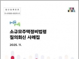 [아유경제=조명의 기자] 서울시는 모아주택ㆍ모아타운사업 추진 시 시민들이 자주 묻는 질문에 대한 답변을 모은 `소규모주택정비법령 질의회신 사례집`을 발간했다고 최근 밝혔다. 반복되는 질의를 미리 정리해 시민 궁금증을 해소하고, 자치구마다 다르게 적용되던 기준을 통일해 신속한 행정 처리를 돕기 위한 취지다. 이번 사례집은 2021년 사업 시행 이후 3년간 누적된 1100여 건의 법령 질의를 분석해 빈도 높은 217건과 유권해석 50건 등 총 267건을 정리했다. 총 9개 장으로 구성해 시민들이 사업 단계에 맞춰 필요한 정보를 바로 찾을 수 있도록 했다. 현장 공무원이 직접 집필ㆍ검수에 참여해 실용성을 높였다. 사례집에는 시민들이 가장 궁금해하는 내용들을 집중 수록했다. 예를 들어 4장 `조합원 자격`에서는 "세입자도 조합원이 될 수 있나", "필지 일부만 참여 가능한가" 같은 질문과 답변이 들어있다. 6장 `분양`에서는 "권리가액은 어떻게 산정하나", "매도청구는 언제 가능한가" 등 핵심 사항을 명확히 정리했다. 또한 사업 준비부터 준공까지 단계별로 내용을 구성해 필요한 정보를 쉽고 빠르게 찾을 수 있다. 사업 초기에는 제1~2장(정의ㆍ준비, 관리계획)을, 조합 설립 시에는 제4장(조합원 자격, 조합설립인가)을, 분양 단계에서는 제6장(관리처분, 분양)을 참고하면 된다. 법제처ㆍ국토교통부 유권해석 50건도 별도로 정리해 법적 근거를 명확히 했다. 사례집은 각 자치구청에 배포되며, 시민 누구나 쉽게 찾아볼 수 있도록 이달 17일부터 시 누리집(모아주택ㆍ모아타운)에 전문이 공개된다. 시는 법령과 관련 규정 변화에 맞춰 사례집을 정기적으로 개정ㆍ보완할 계획이다. 서울시 관계자는 "이번 사례집이 모아주택ㆍ모아타운사업을 추진하는 시민들과 관계 공무원들에게 신속한 추진을 위한 길라잡이로 활용되길 기대한다"며 "현장 목소리를 지속 반영해 실효성을 올리겠다"라고 말했다. ⓒ AU경제 (http://www.areyou.co.kr/) 무단전재 및 재배포 금지