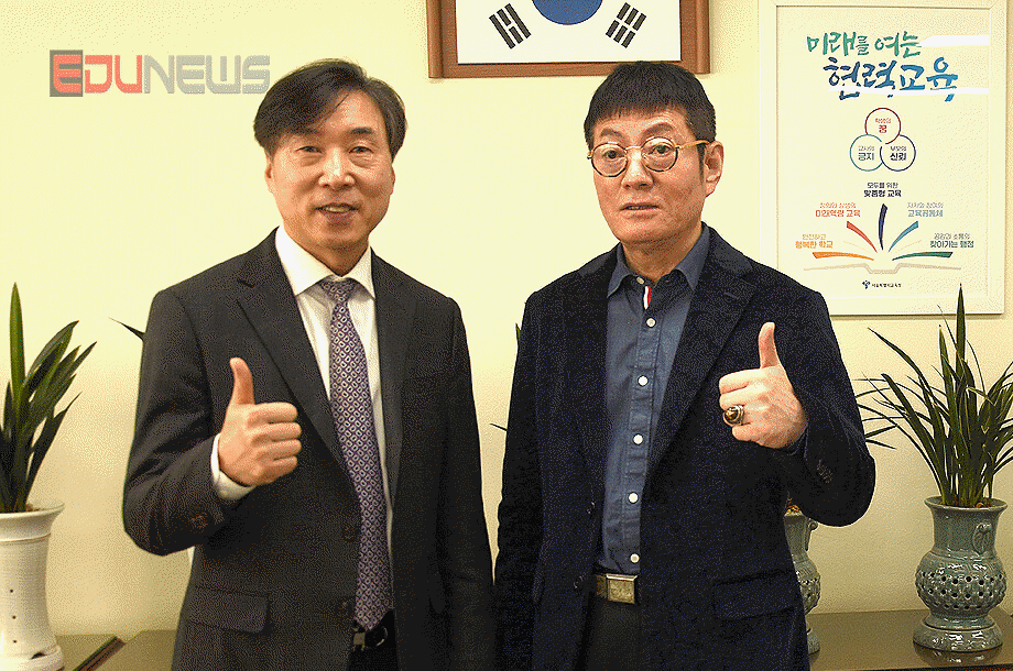 이에 본지는 지난 21일 박기원 회장과 함께 류장경 서울특별시교육청 산하 강남서초교육장을 인터뷰했으며 인터뷰를 마치고 임태현 교육지원국장, 박기원 회장, 류장경 교육장이 “강남서초교육지원청 파이팅”을 외치고 있다.