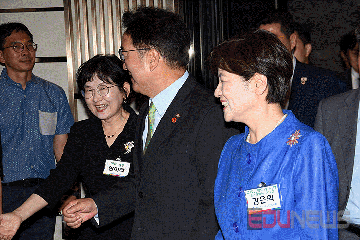 강은희 전국시도교육감협의회 회장은 “기차를 타고 오는데, 오신다(우원식 의장)는 말씀을 듣고 정말 너무 반가웠다”고 서두를 열고 “사실 정부 정책의 변화에 대해서 많은 분들이 우려도 하고, 기대도 하고 계신다”면서 “지난 7월 2일 시도교육감님들(정근식·도성훈·신경호·윤건영·김광수교육감)과 교육의 공공성과 지속가능성 확보, 미래교육 체제 전환을 위한 4대 교육과제를 국정기획위원회에 설명하고 공식 제안했다”고 설명했다.