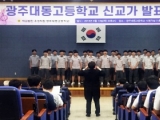 3.1운동과 임시정부수립 100주년을 맞아 친일잔재 청산을 진행 중인 광주대동고등학교가 교가(校歌) 교체작업을 완료하고 13일 ‘신교가 발표회’를 개최했다.