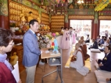 이용섭 광주광역시장이 12일 오전 서구 무각사 대법당에서 열린 '부처님오신날 봉축법요식'에 참석하기 위해 청학 주지스님, 송갑석 국회의원 등 내빈들과 법당으로 이동해 신도들과 대화를 나누고 있다상호명:(주) 이데이뉴스 | 제호: 이데뉴스닷컴 | 사업자번호 : 409-86-29149