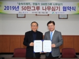 산림조합중앙회(회장 이석형)는 2019년 2월 18일(월) 제주시청 회의실에서 '숲속의 제주' 만들기 500만 그루 나무심기 프로젝트를 성공을 위한 상호협력과 쾌적한 제주 환경 만들기를 위한 협약을 맺었다.