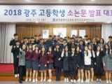 18일 광주시교육청(교육감 장휘국)에 따르면 광주교육정책연구소는 지난 11월 17일(토) 교사와 학생 60여 명이 참석한 가운데 ‘2018 광주 고등학생 소논문 발표대회(이하: 소논문발표대회)’를 시교육청 본관 2층 대회의실에서 개최했다.