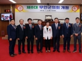 무안군의회(의장 이정운)는 3일 의회 본회의장에서 김산 무안군수와 각 기관사회단체장 그리고 제8대 의회의원 가족 등 약 100여 명이 참석한 가운데 제8대 무안군의회 개원식을 개최했다.